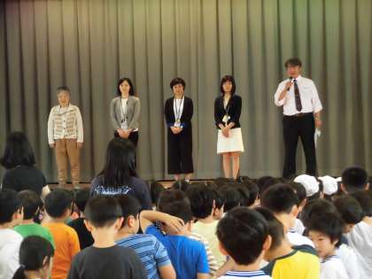 集会の後、校長先生から「スマイルルーム」についてのお話。そして「スマイルルーム」の先生方の紹介がありました。