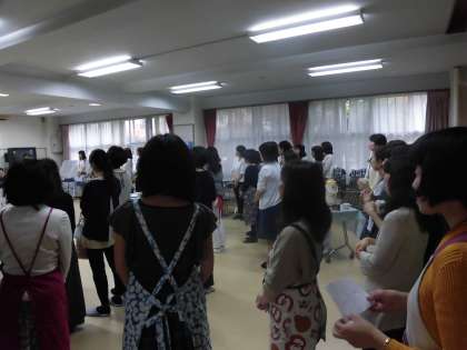 PTA主催による歓送迎会がありました。会の最後に、校長先生の演奏による「なごり雪」「翼をください」を、参加された方全員で合唱しました。
