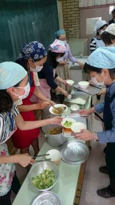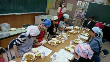1年生・転入生の保護者を対象に給食試食会を開催しました。子どもたちが毎日食べている給食を味わっていただき、なごやかなひとときとなりました。