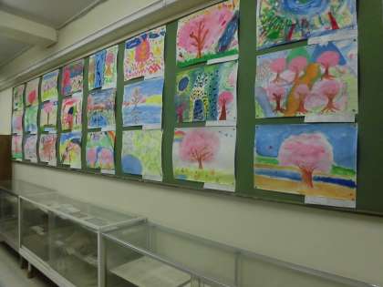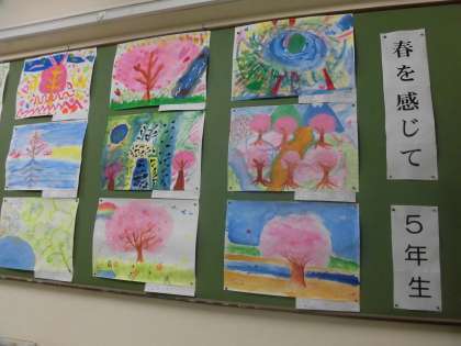 今現在、職員玄関と4階フロアにて、5年生による「絵『春を感じて』」を展示しています。