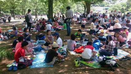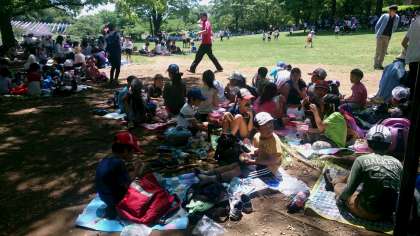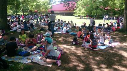 待ちに待ったお弁当タイム。お家の人に感謝して、いただきます!