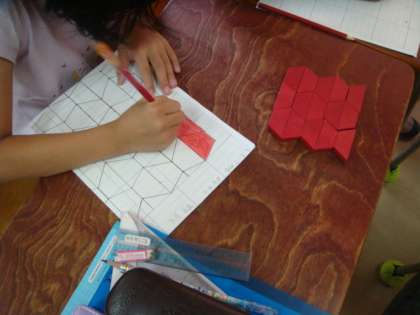 先日『平行四辺形や ひし形、台形を使って、きれいなしきつめ模様を作ろう』という学習をしました。