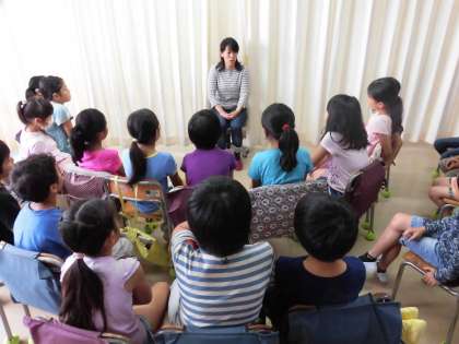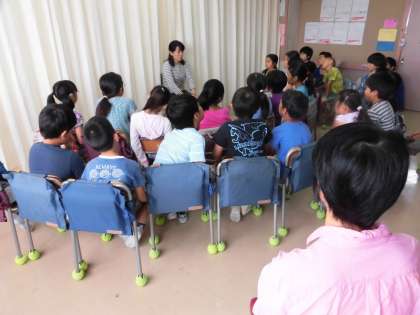 いつも読書ボランティアの方に来ていただき、さまざまな物語をみんなに紹介してくださっています。