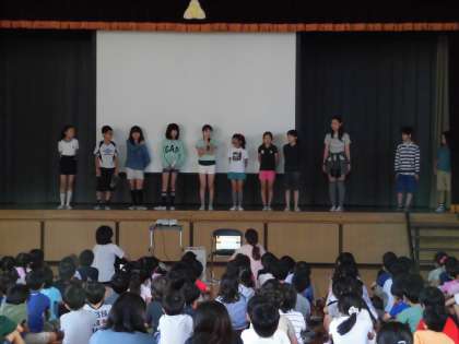 今回は保健委員会の子どもたちが「目の大切さ」について発表してくれました。