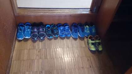 避難訓練完了。靴そろえもばっちり。