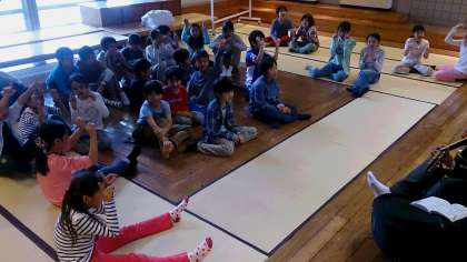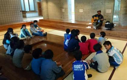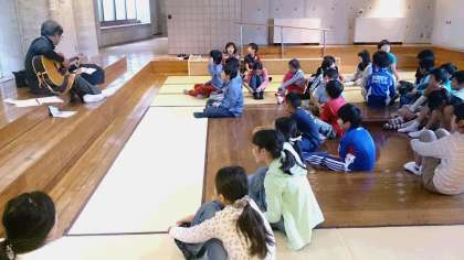 大広間に歌いたい人たちが集まって、即席校長と歌おうコーナーができました。ノリノリで歌いました!