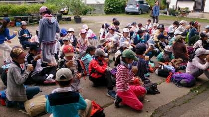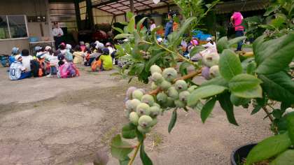 りんごやブルーベリーを栽培している宮田農園さんに来ています。りんごのお話を聞きます。そして、りんごジュース!