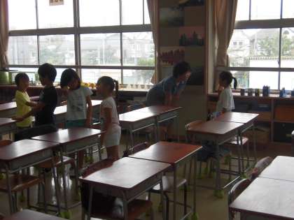 7月12日(火)の朝、「たてわり班『内遊び』」を行いました。