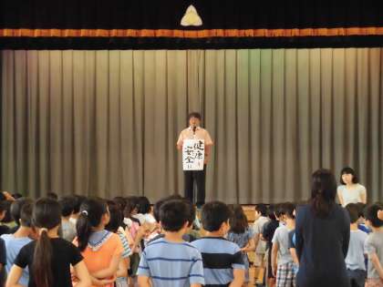 終業式での校長先生のお話は「健康と安全に」というお話でした。みんなは静かに、姿勢良く、お話を聞くことができました。
