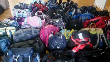 ホストファミリーの方に大きな荷物を運んでもらい、みんな登校してきました。