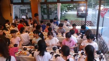 夜ごはん。部屋によって、集合はまちまち。がんばってほしいな。