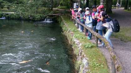 山登り、ハイキングの後はさかなと森の観察園で癒やされます。みんなよくがんばりました。