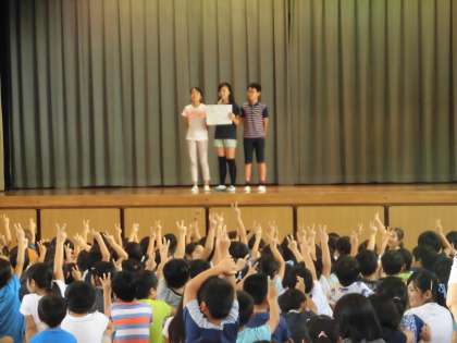 9月2日(金)の朝、代表委員による「あいさつ集会」がありました。