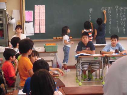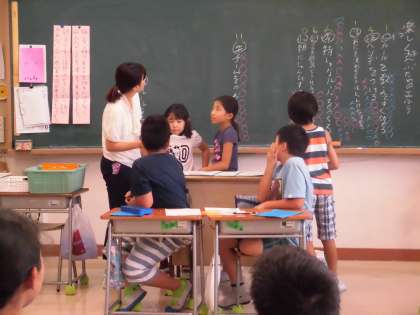 9月12日(月)の5時間目、校内研究全体会がありました。今回は中学年の4年1組で国語科を行いました。