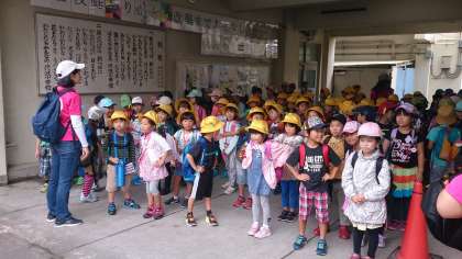 台風が速く通りすぎてくれて、1、2年遠足出発です!