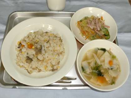 チャーハン 牛乳 春雨サラダ ワンタンスープ