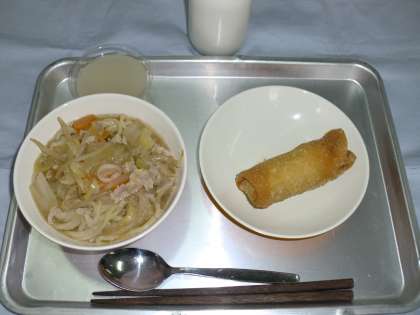 新代沢ラーメン 牛乳 春巻き りんごゼリー