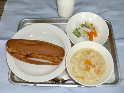 ウィンナーサンド 牛乳 卵スープ ピクルス