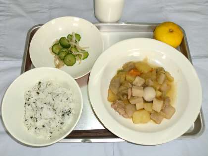 わかめごはん 牛乳 鶏肉とじゃがいものうま煮
