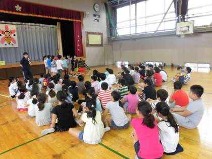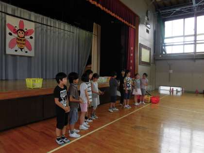 10月3日(月)の3,4時間目、花見堂小学校の4年生と本校の4年生との交流会活動がありました。場所は、花見堂小学校体育館でした。
