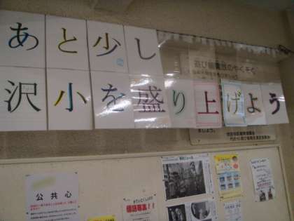 前期代表委員会による『校舎校庭お別れスローガン』〜“校舎校庭ありがとう 改築まであと少し 代沢小を盛り上げよう”〜