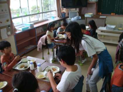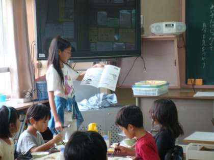 10月11日(火)の給食中、保健食育委員会のみなさんは『おはしのルールを確認しよう』で、各クラスをまわりました。