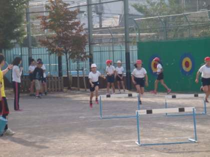 出場種目は「100m走」「50mハードル走」「走り幅跳び」「走り高跳び」です。この中から児童は、1人1種目に出場します。その他にも「長縄跳び」と「400mリレー」もあります。