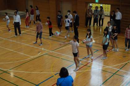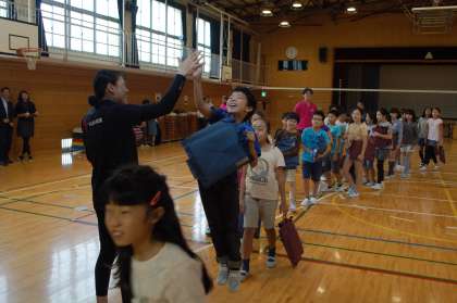 第1部の終了後、6年生は櫻井選手とオリンピックレベルの『バレーボール体験』をしました。