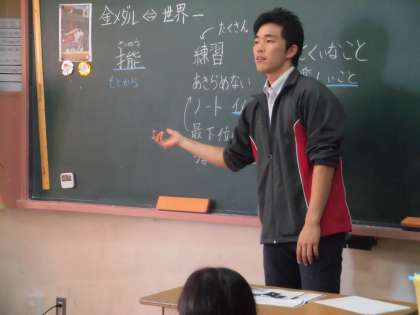 「道徳授業地区公開講座」で3年生が行った授業の主題名は「特徴を特長に」で、『世界一うつくしい体そうをめざして〜内村航平〜』という資料を活用して行いました。