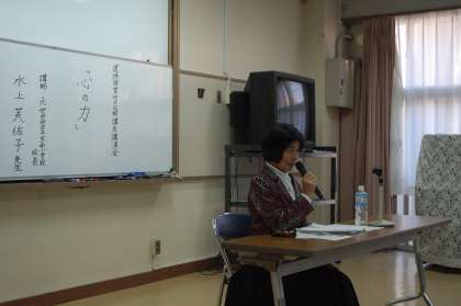 講演会演題は「心の力」。講師には、元 京西小学校の校長先生であり、世田谷区小学校教育研究会道徳部長も務めてらっしゃいました水上芙佐子先生をお迎えして行いました。
