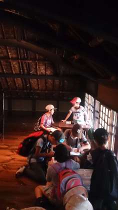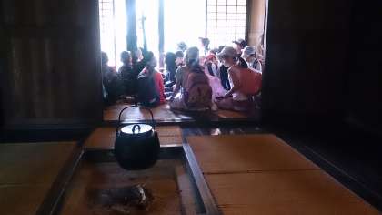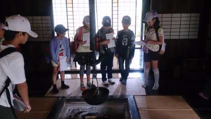 古民家に上がって見学です。敷居を踏まないように、習わしをしっかり学んで見学です。