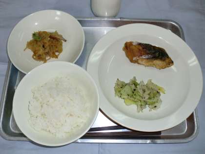 ごはん 牛乳 魚の立田あげ キャベツのゆかりかけ