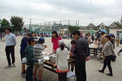 たくさんの地域の方、保護者の方、卒業生のみんな、児童のみんな、そのごきょうだいの方々、等々が、代沢小学校の校庭に集っています。