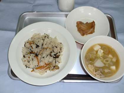 ひじきごはん 牛乳 鶏肉の南蛮焼き 粕汁