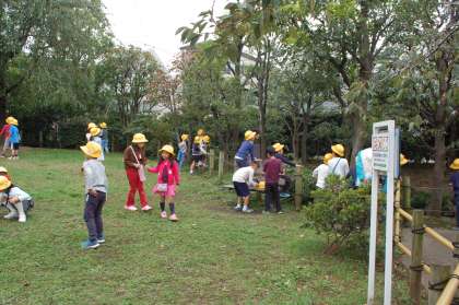 ねらいは『交通安全に気をつけて野原や公園に行き、諸感覚を使って秋を感じながら生きものを探し、友達と仲良く遊ぶことができるようにする。』でした。