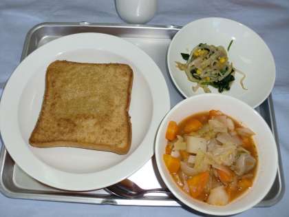 セサミトースト 牛乳 ボルシチ ほうれんそうサラダ