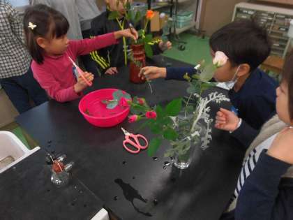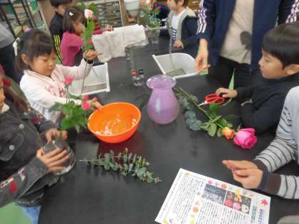 今月の花は「バラ(バラ科バラ属)」「ユーカリ(フトモモ科ユーカリ属)」です。