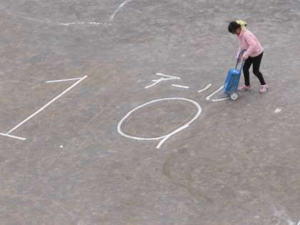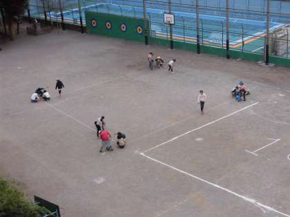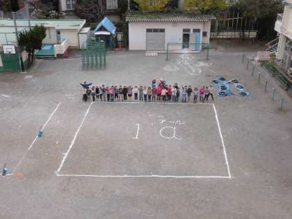 みんなは1aの正方形をかく道具を持ちより、校庭いっぱいに1aの正方形をえがくことができました。