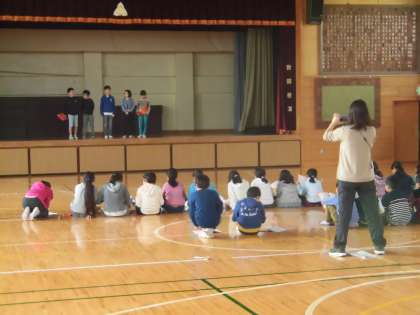 6年生「劇『我が友クレイン』」の練習の様子、です。