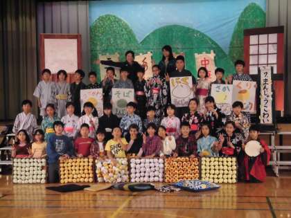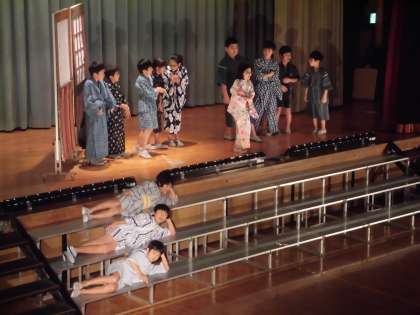 下の写真は、4年生「劇『まんじゅうこわい』」のリハーサルの様子です。