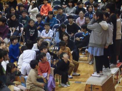 学年と学年との舞台セットの入れ替えの時間帯を有効に、そして全校児童を更に楽しませてくれた素敵な企画でした。