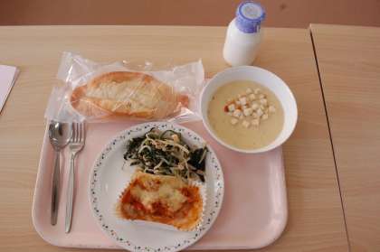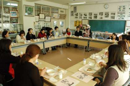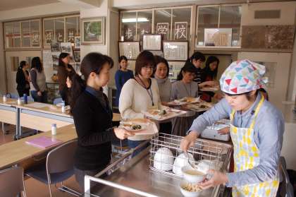来年度から、花見堂小跡地での仮校舎生活が始まり、給食は太子堂調理場からの配送となります。そのことを受け、保護者から給食を実際に食べてみたいというお声が上がりました。そこで、何とか実現の方向を探り、太子堂中学校のご協力を得ることができ、太子堂中学校での試食会が実施されました。(校長先生はじめ、太子堂中学校に本当に感謝です。ありがとうございました。)