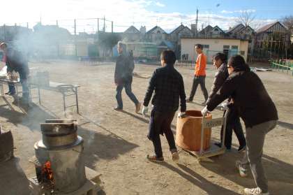 最高の天気です。朝早くから、もちつき大会の準備が始まっています。もちつき委員の皆様をはじめ、多くの保護者の皆様、親児の会の皆様に感謝です。この校舎校庭での最後のもちつき大会、これから大いに盛り上がりましょう!