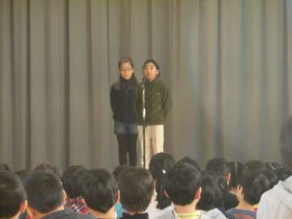 次に「代表の言葉」を、4年生が担当しました。原稿を見ないではっきりと大きな声で、全校児童の前で堂々と発表することができました。