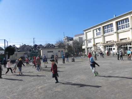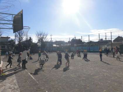 1月10日(火)の中休み。みんなはこの時を待ちわびていたかのように、たくさんの児童が校庭遊びに興じました。