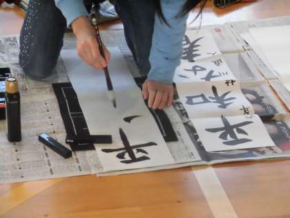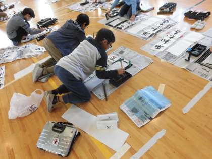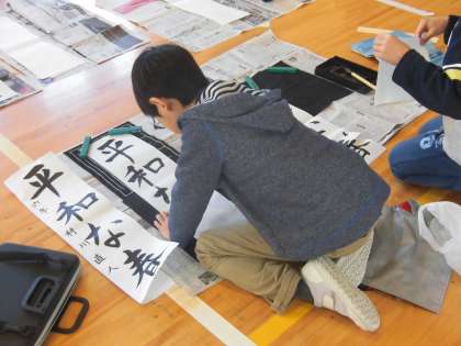 5年生は『豊かな心』、6年生は『平和な春』という字を、丁寧に書き上げました。