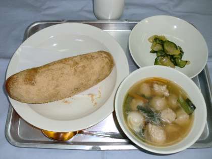あげパン 牛乳 肉団子入り春雨スープ 野菜の中華風味