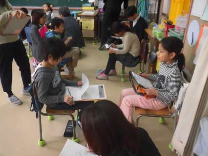 今回は中学年の3年1組で国語科を行いました。