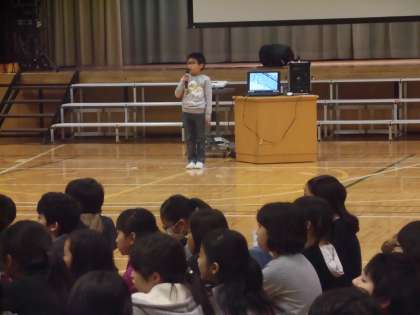 1月23日(月)の1時間目、体育館にて「校舎お別れ記念集会」を行いました。1月23日は代沢小学校の開校記念日です。