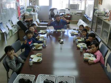 5〜7名の児童が校長室におじゃましまして『会食』を楽しんでいます。